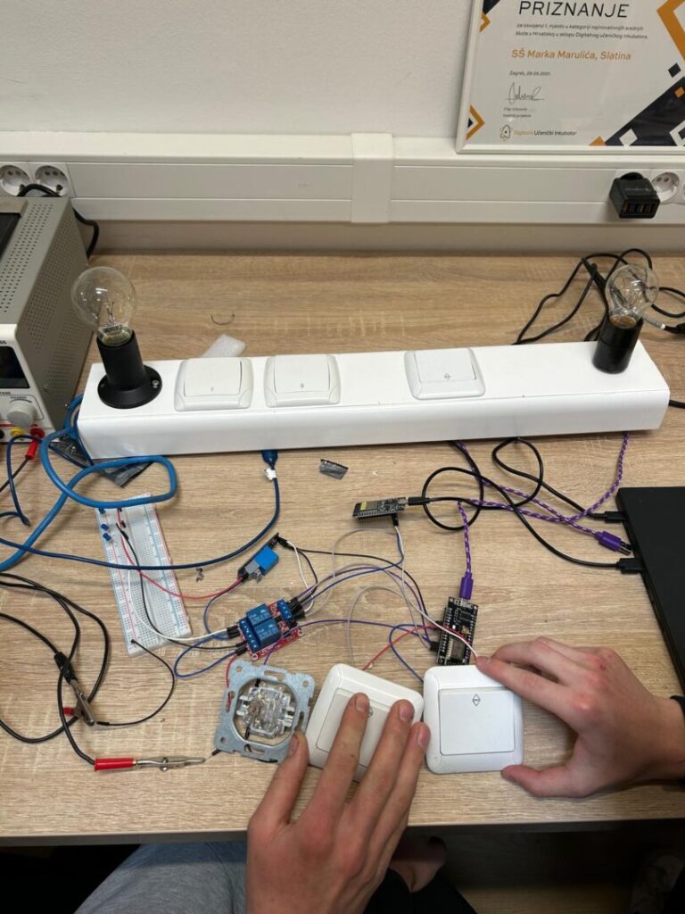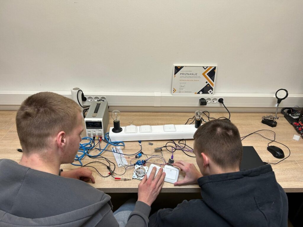 Još jedna skupina učenika započela je s izradom sustava upravljanja rasvjetom putem mobilne aplikacije. Učenici su već uspješno povezali osnovne komponente i izradili prvi demo u kojemu se rasvjeta u učionici elektrotehnike može uključiti i isključiti putem Wi‑Fi mreže i već postojećih instalacijskih sklopki. Sljedeći korak je povezivanje senzora koji će pratiti osvijetljenost prostorije.