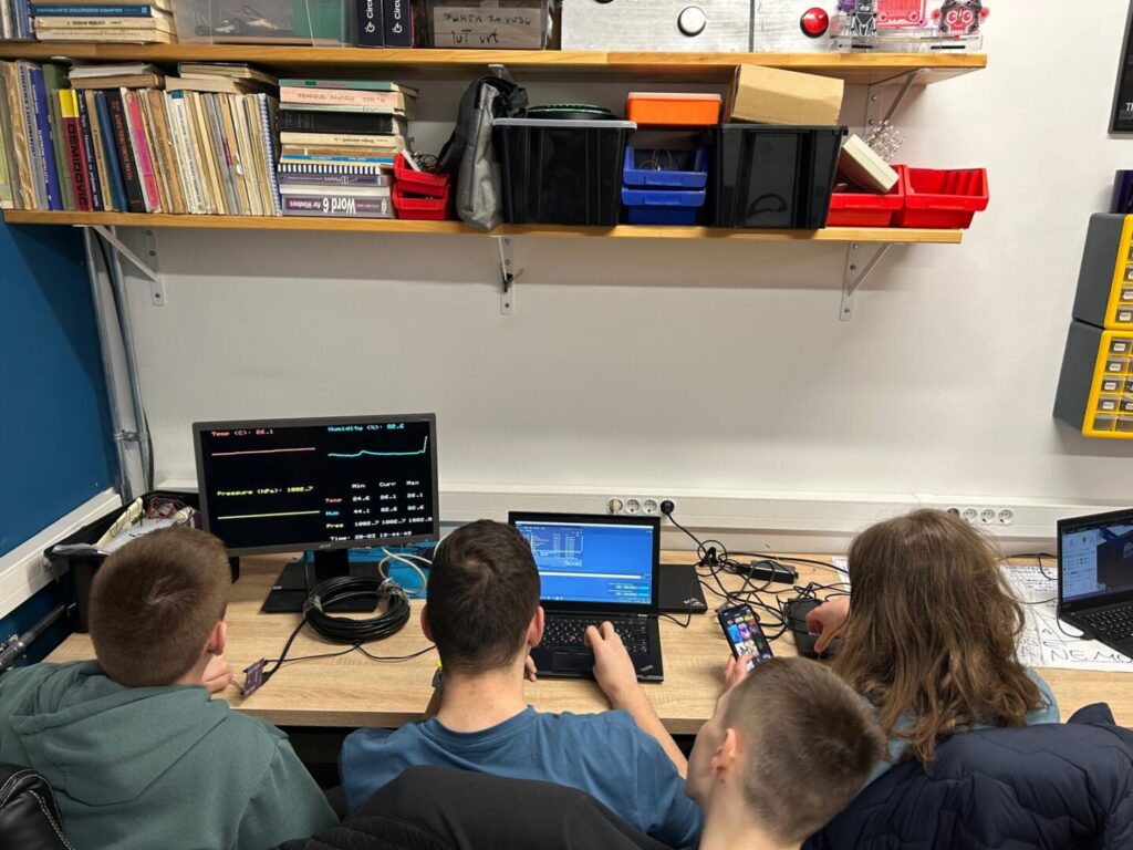 Učenici su najprije upoznali novu opremu i isprobali osnovne funkcionalnosti IoT kompleta i senzora. Nakon toga organizirani su u timove te su započeli prototipove uređaja koji će kasnije postati dio većih sustava.