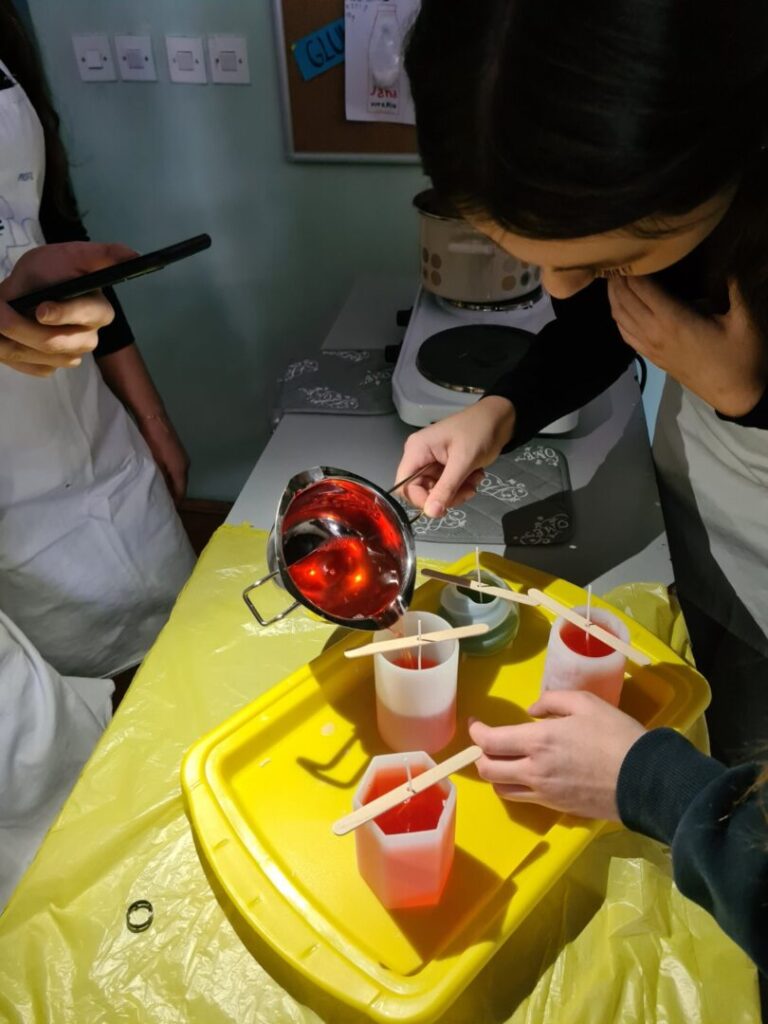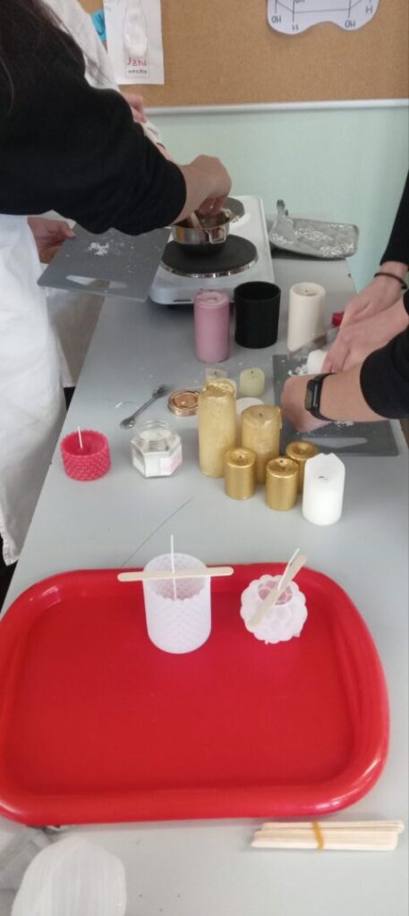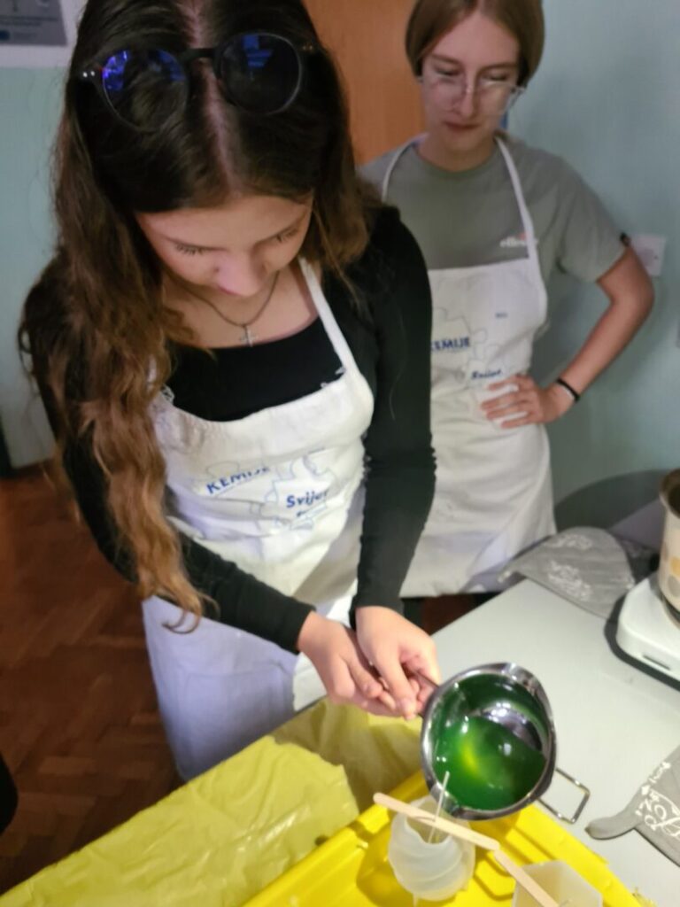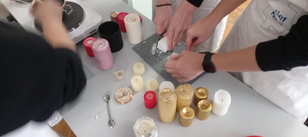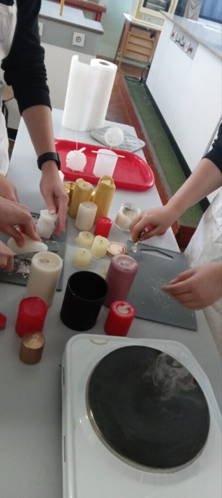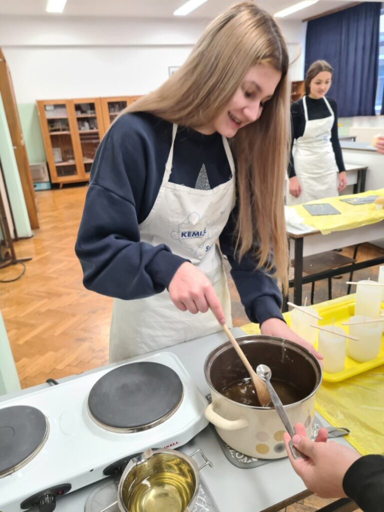 Učenice 1.a Stefani Oskomić, Tea Matanović, Mia Grđan, Franka Martinović, Katja Košćak, Karla Spasenovski, Lana Trupina, Mariana Jurići 2.a Lana Benko, Karla Horvat i Lana Košćak članice školske zadruge „SLATINA“ unutar sekcije Izrada uporabnih i ljekovitih predmeta marljivo su kroz nekoliko radionica izrađivale svijeće. Prije početka samih radionica učenice su se uključile u prikupljanje starih, korištenih svijeća. Nastavnice Dinka Prenković i Dragana Medved upoznale su učenice s postupcima u procesu izrade novih svijeća od starih. Učenice su na radionicama aktivno sudjelovale u cjelokupnom procesu recikliranja svijeća i na taj način su dale svoj doprinos u smanjenju otpada od svijeća.