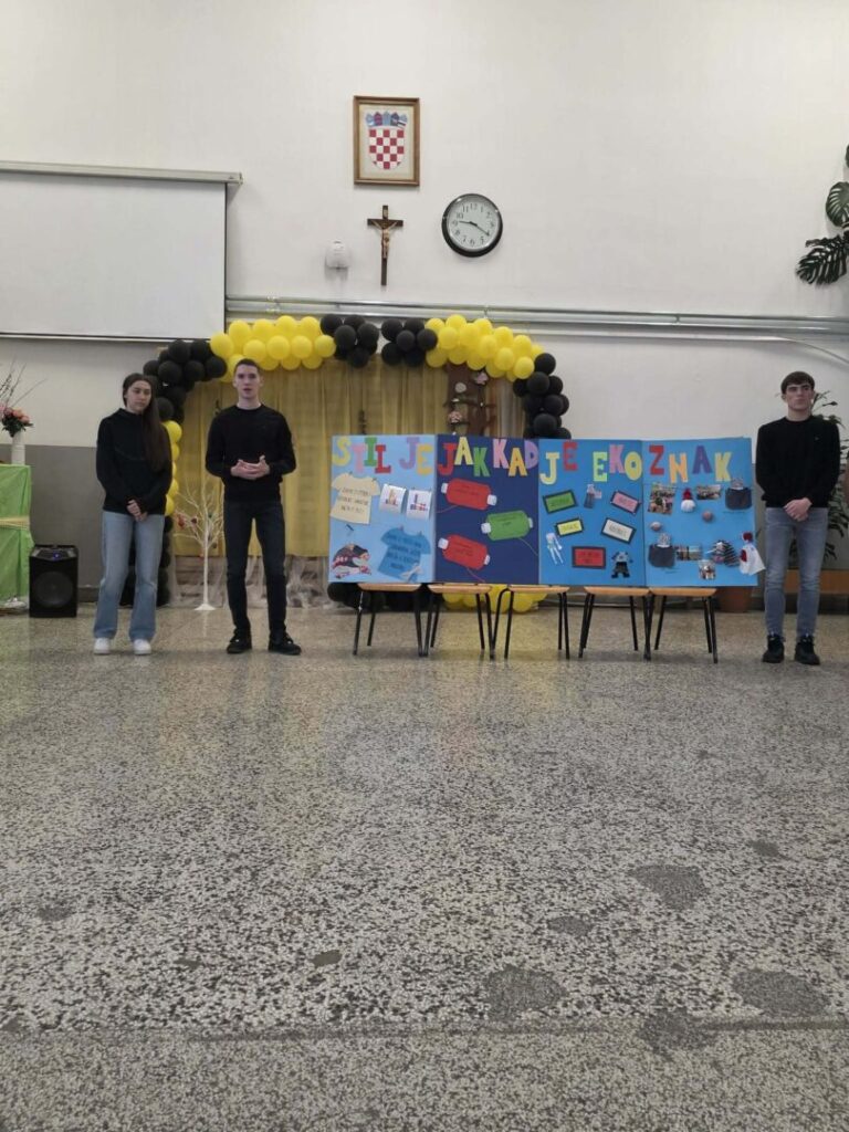 Edukativni punkt: Na štandu učenika izložen je edukativni plakat. Učenici posjetiteljima, uz prodaju, kratko objašnjavaju zašto je važno ne bacati odjeću u obično smeće i gdje u Virovitici mogu odnijeti uništeni tekstil.