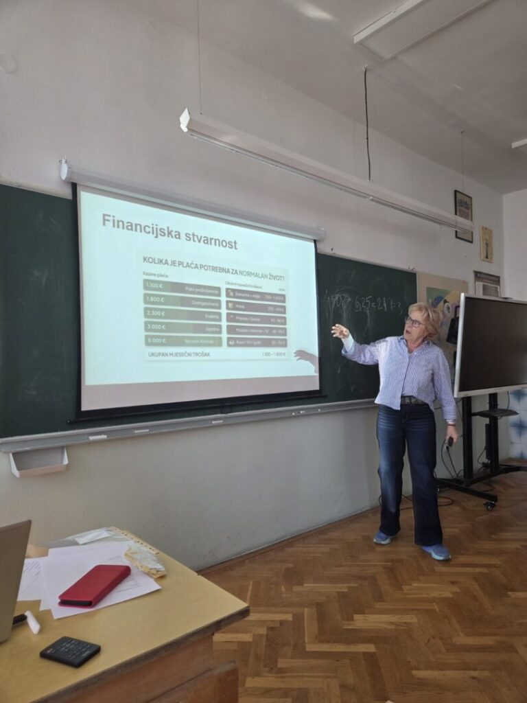 U interaktivnom izlaganju učenici su imali priliku promišljati o važnosti financijske pismenosti u svakodnevnom životu i budućem profesionalnom razvoju.