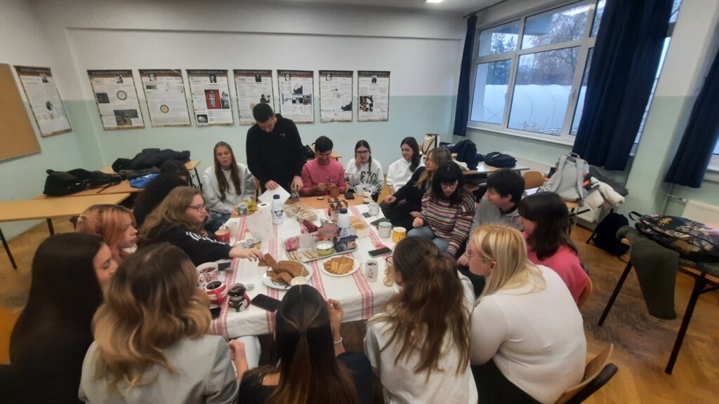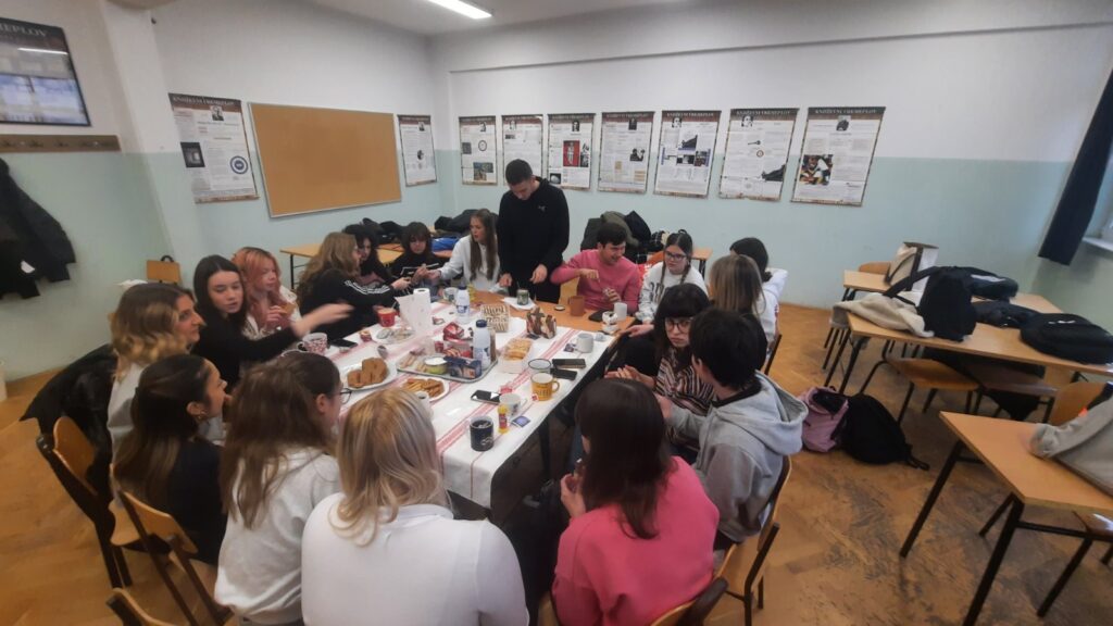 Tradicijska kultura temelji se na prenošenju znanja, običaja, vjerovanja i navika s generacije na generaciju. U njezinu središtu nalazi se sjećanje – osobno i kolektivno. Bez pamćenja prošlosti nema ni identiteta zajednice. Upravo zbog toga sjećanje je jedan od najvažnijih elemenata koji povezuje ljude i čuva njihovu kulturu, a kako je ono glavna tema Proustova romana Combray maturanti su, već tradicionalno u našoj školi na dvosatu Hrvatskoga jezika 4. prosinca  s prof. Željkom Orban uz čaj i kolačiće,  interpretirali Proustov roman. Uz šalicu toplog čaja i predmet kojim su evocirali vlastita sjećanja iz prošlosti upoznali su životopis i književno stvaralaštvo toga francuskog romanopisca, jednog od utemeljitelja moderne proze. Čitajući ulomke iz najpoznatijeg romana Combray  razgovarali smo o traženju izgubljena vremena i složili se s filozofom Henrijem Bergsonom da je život „odvijanje svitka, odnosno kao neprekidno namatanje niti na klupko…“ Zaključili smo da se tradicija ne sastoji samo od zapisanih pravila i običaja, nego i od emocija, doživljaja i uspomena koje se povezuju s određenim predmetima ili radnjama. Ti detalji često nose više emocija i identiteta nego bilo koji pisani dokument. Kada nestanu takvi osjetilni “okidači”, često nestaje i dio tradicije, stoga smo zaključili da kultura živi i u sjećanju. Sjećanja ovogodišnjih maturanata možete pročitati ovdje, kao i dojmove s dvosata.