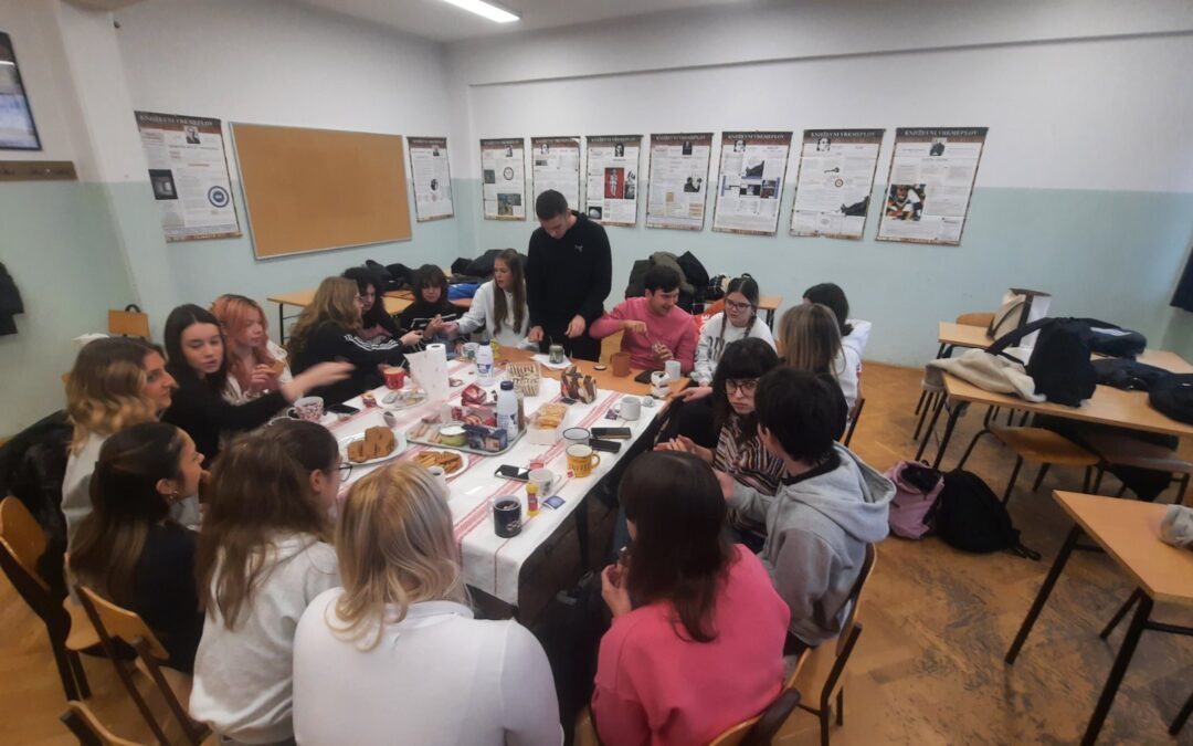 Tradicijska kultura temelji se na prenošenju znanja, običaja, vjerovanja i navika s generacije na generaciju. U njezinu središtu nalazi se sjećanje – osobno i kolektivno. Bez pamćenja prošlosti nema ni identiteta zajednice. Upravo zbog toga sjećanje je jedan od najvažnijih elemenata koji povezuje ljude i čuva njihovu kulturu, a kako je ono glavna tema Proustova romana Combray maturanti su, već tradicionalno u našoj školi na dvosatu Hrvatskoga jezika 4. prosinca  s prof. Željkom Orban uz čaj i kolačiće,  interpretirali Proustov roman. Uz šalicu toplog čaja i predmet kojim su evocirali vlastita sjećanja iz prošlosti upoznali su životopis i književno stvaralaštvo toga francuskog romanopisca, jednog od utemeljitelja moderne proze. Čitajući ulomke iz najpoznatijeg romana Combray  razgovarali smo o traženju izgubljena vremena i složili se s filozofom Henrijem Bergsonom da je život „odvijanje svitka, odnosno kao neprekidno namatanje niti na klupko…“ Zaključili smo da se tradicija ne sastoji samo od zapisanih pravila i običaja, nego i od emocija, doživljaja i uspomena koje se povezuju s određenim predmetima ili radnjama. Ti detalji često nose više emocija i identiteta nego bilo koji pisani dokument. Kada nestanu takvi osjetilni “okidači”, često nestaje i dio tradicije, stoga smo zaključili da kultura živi i u sjećanju. Sjećanja ovogodišnjih maturanata možete pročitati ovdje, kao i dojmove s dvosata.