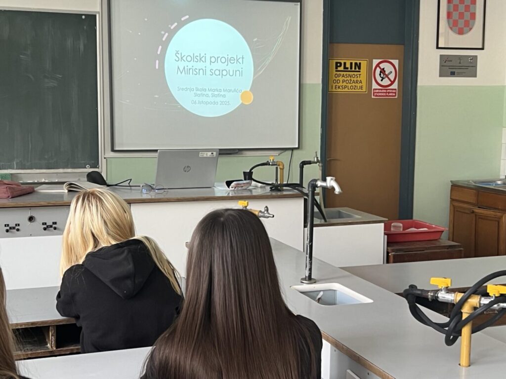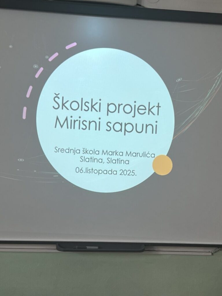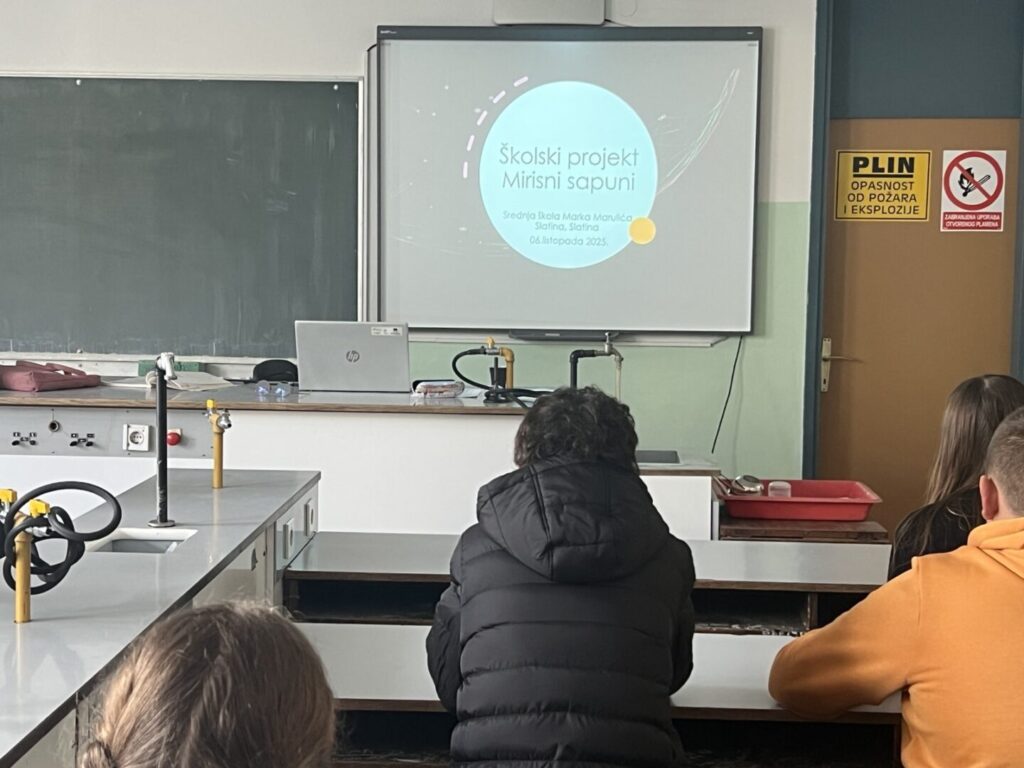 Provođenje projekta “Mirisni sapuni” započelo je predavanjem prof. Željke Venus. Projekt će se realizirati kroz cijelu školsku godinu 2025./26. Početak projekta bio je je 06.10.2025. godine. Prof. Venus upoznala je učenike sa načinima realizacije projekta.