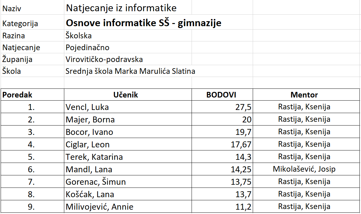 U petak, 16. 01. 2026. održano je školsko natjecanje iz informatike u Srednjoj školi Marka Marulića Slatina.