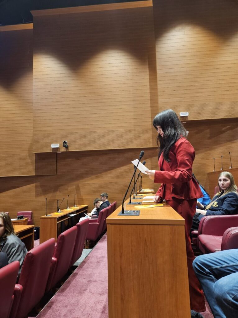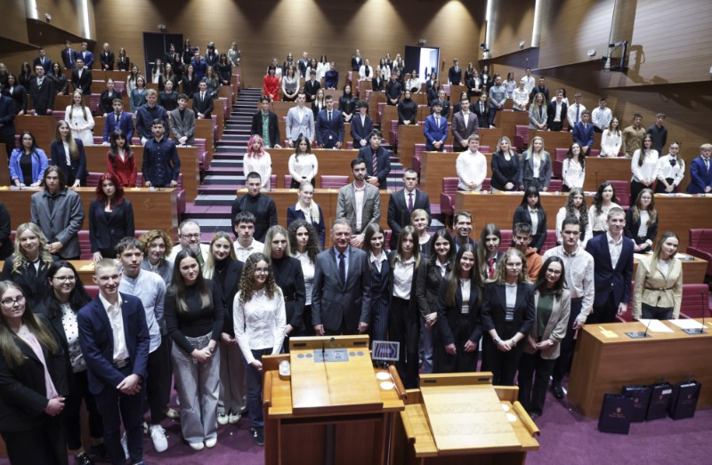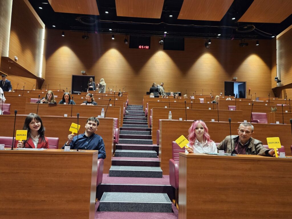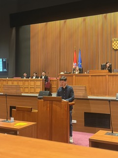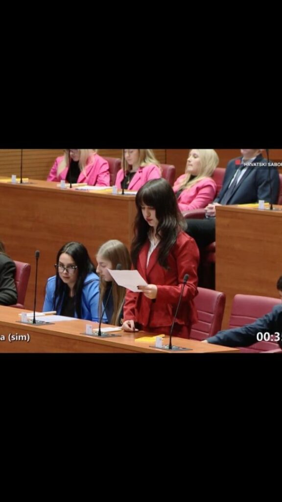 Sudjelovanje na 13. sjednici Hrvatskog sabora za mene je bilo ostvarenje dugogodišnje želje. Oduvijek me zanimalo kako sjednica zapravo funkcionira iz prve ruke, pa mi je iznimno drago što sam napokon dobila priliku i osobno sudjelovati. Poseban dojam na mene ostavila je i prilika da uživo poslušam govor predsjednika Sabora, Gordana Jandrokovića. Iako je cijeli dan padala jaka kiša, to ni u jednom trenutku nije moglo pokvariti moje raspoloženje. Energija je bila odlična, prvenstveno zato što je ekipa s kojom sam bila super i iznimno poticajna. Moram priznati da sam na samom početku osjećala veliku tremu, no onog trenutka kada su me prozvali da iznesem svoju repliku, sav strah je jednostavno nestao. Fokus na ono što želim reći nadvladao je nesigurnost, a posebno mi je drago što su me moji voljeni pratili i slušali preko prijenosa uživo. Bilo je to neprocjenjivo iskustvo koje ću dugo pamtiti! (Dora)