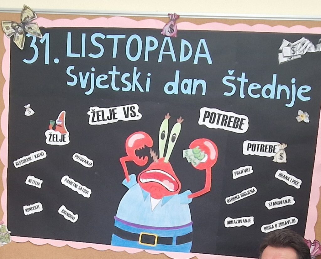 Povodom Svjetskog dana štednje, koji se tradicionalno obilježava 31. listopada, učenici 1. i 3. razreda Ekonomske škole s velikim su entuzijazmom sudjelovali u nizu aktivnosti posvećenih važnosti štednje i financijske odgovornosti. Ovaj dan, koji nas podsjeća na značaj pažljivog upravljanja novcem, učenici su obilježili na kreativan i edukativan način, uz podršku svojih nastavnika prof. Milnovića, prof. Đurasek, prof. Švamberger i prof. Grgić.