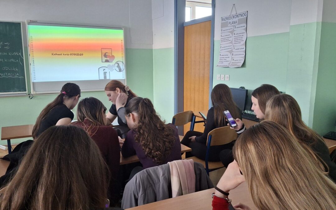 Manuela Marinović i Maja Dorić, učenice naše škole, prezentirale su ovu hvalevrijednu temu. Učenici su se upoznali sa pojmom volontiranja, osnovnim obilježjima volontiranja, prednostima volontiranja za zajednicu, vrstama volontiranja. Naglašeno je da svatko može biti volonter, važna je samo dobra volja, a ne i iskustvo. Učenici će, uz podršku svojih nastavnika, odabrati područje koje ih zanima, češće se propitivati u lokalnoj zajednici , ali i intenzivno surađivati sa lokalnim udrugama i institucijama. Nakon prezentacije, učenici su sudjelovali u kahoot kvizu, izražavajući svoje dojmove o temi te navodeći vlastite ideje provedbe volonterskih aktivnosti. Učenicima su u pripremi ovih aktivnosti pomogle profesorica J. Matišić i I.Švamberger.